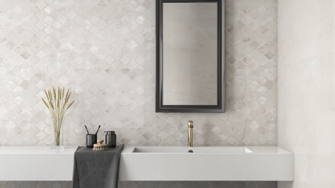 Керамическая плитка LEMNOS CREMA 33,3X100 с глянцевой поверхностью прекрасно подходит для отделки ванных комнат, душевых, санузлов и других помещений. Выдержанная в минималистичном стиле, коллекция LEMNOS имеет деликатный рисунок с фактурой под камень со светлыми прожилками. Плитка выпускается с двух оттенках: кремовом и перламутрово-сером. Базовые модули дополняет координированная по цвету структурированная плитка с рисунком в виде сот. Завершает ассортимент наличие декоративного бордюра.